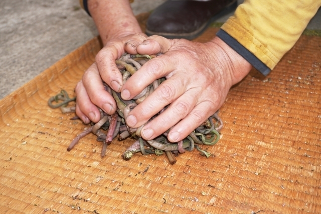 ゼンマイ干しをするときは風がなく天気が良い日でなければなりません。