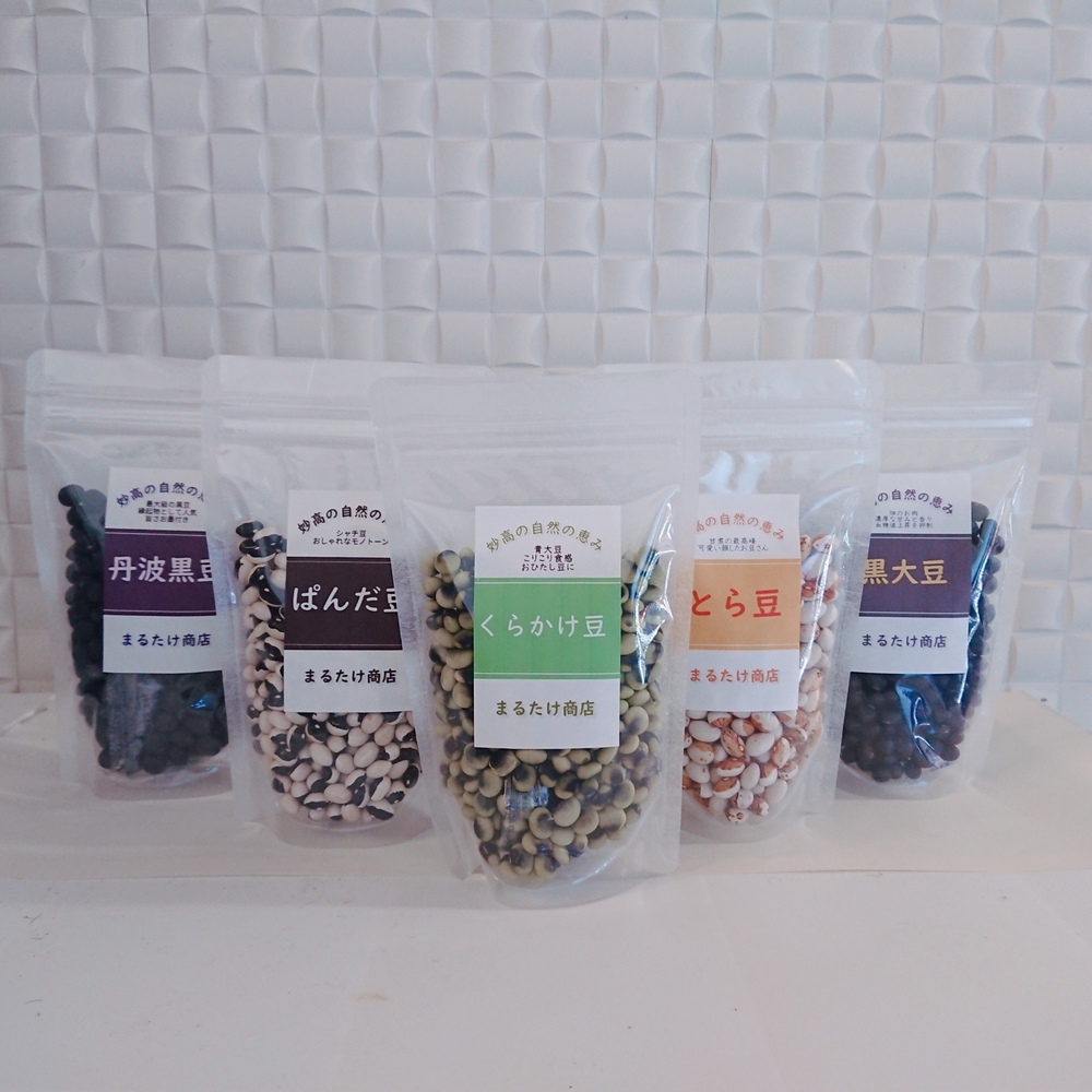 まるたけ商店では、【紫花豆】 と【お任せお豆3種セット】を取り扱っています。