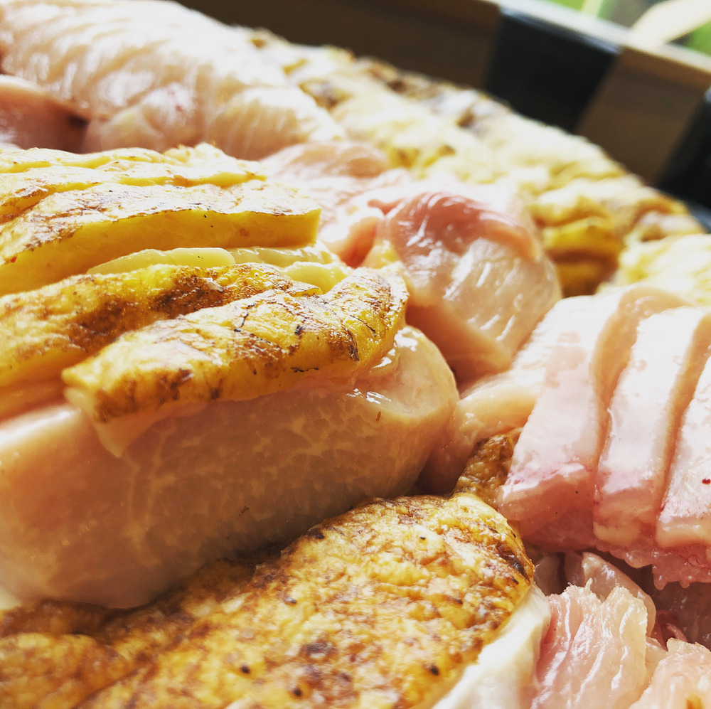 2010年3月、鹿児島で出会った自家肥育鶏は見たことがないほど大きく、地鶏を凌駕する肉味・食感はまさに究極の鶏肉。「この鶏を皆さんに味わってほしい」…そんな想いから始まったゼロからの鶏生産は、様々な試みの繰り返しでした。開発におよそ5年の年月をかけて作り上げた大摩桜の旨味と食感を感じてください。