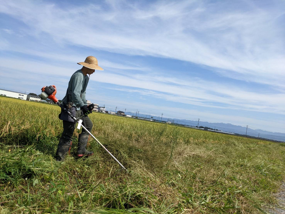 田んぼの周りの草刈りを行っています。