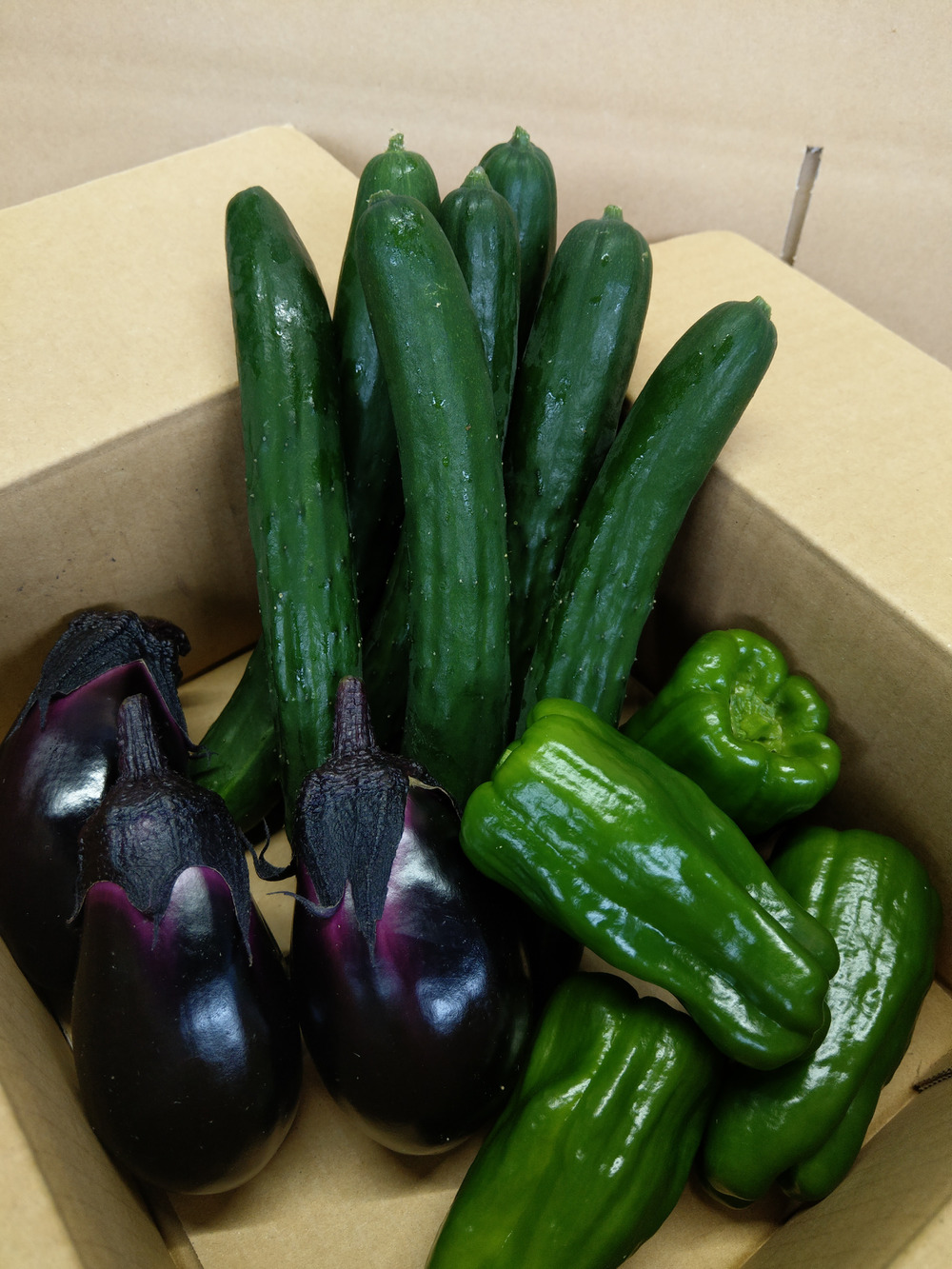 今回みずナスの収穫が始まりましたので野菜セットを出品!