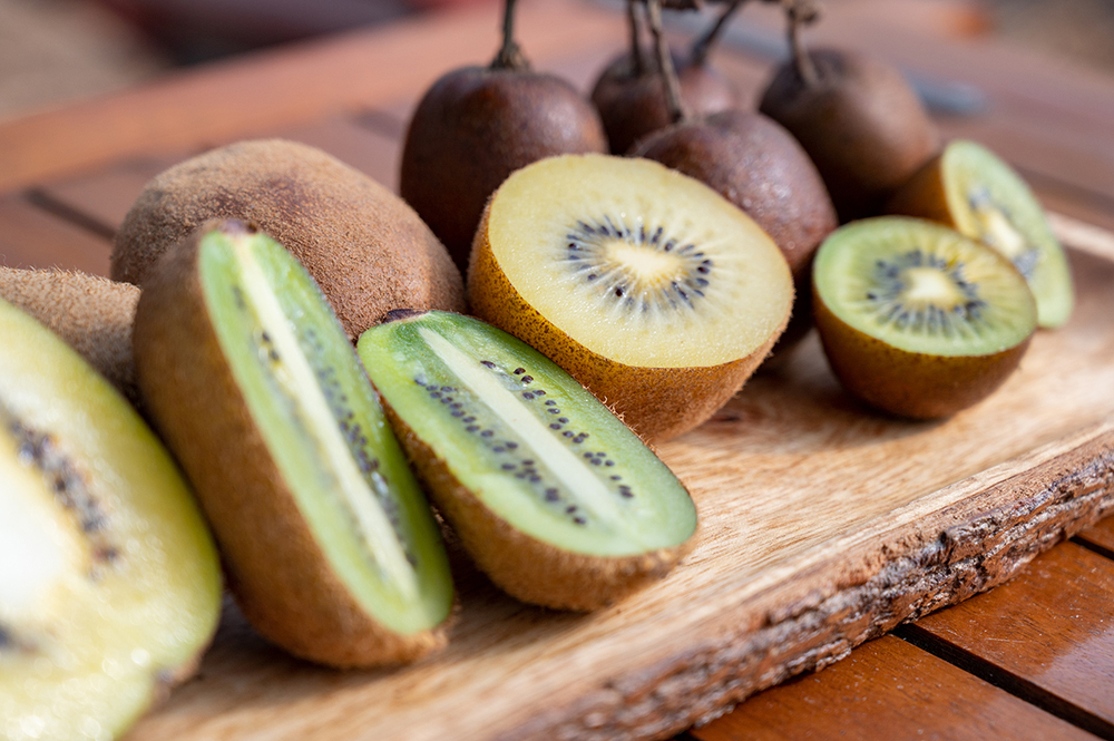 黄色の果肉のキウイは10月頃収穫をむかえ、11月になると緑のキウイが収穫をむかえます、硬いまま収穫するキウイは収穫してから追熟しさらに糖度を増していきます。