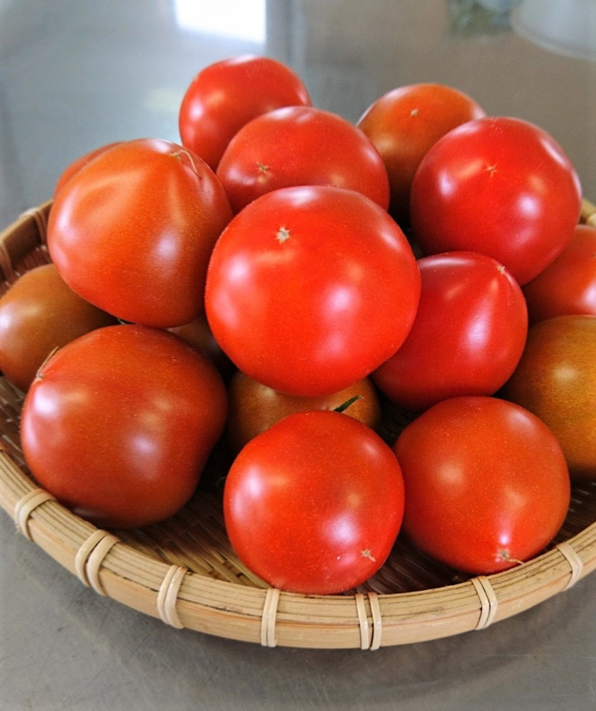 里山村の絶品中玉トマト。予定より早く完熟してきました。
