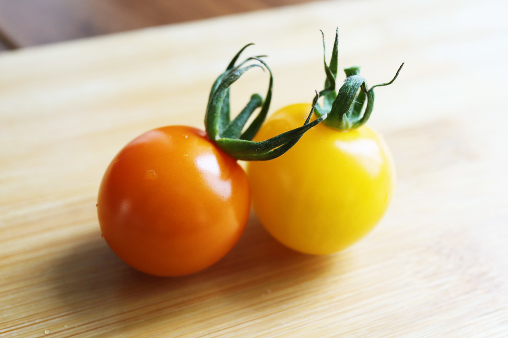 いつものカラフルトマトから、特に人気のピッコラカナリア(オレンジ色トマト)とイエローミミ(黄色トマト)を選抜し、商品化しました😄