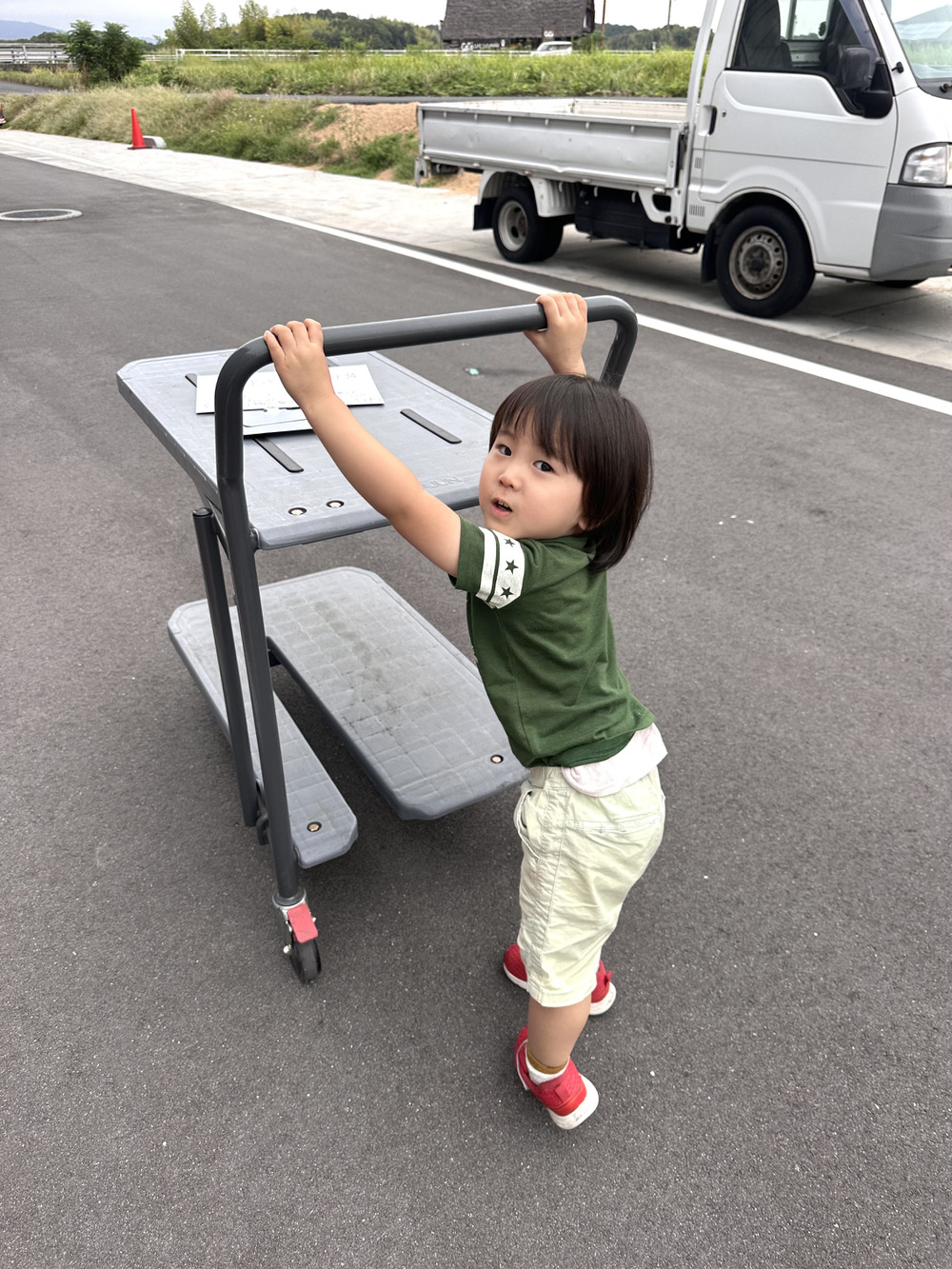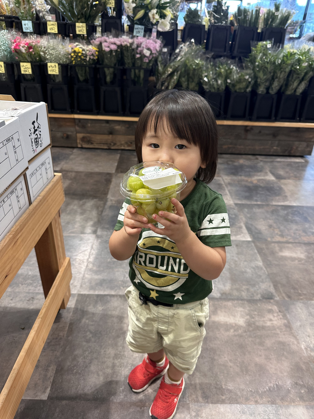 写真は収穫が始まったシャインマスカットと朝6:30から直売所の出荷を手伝ってくれるおチビちゃんです😊