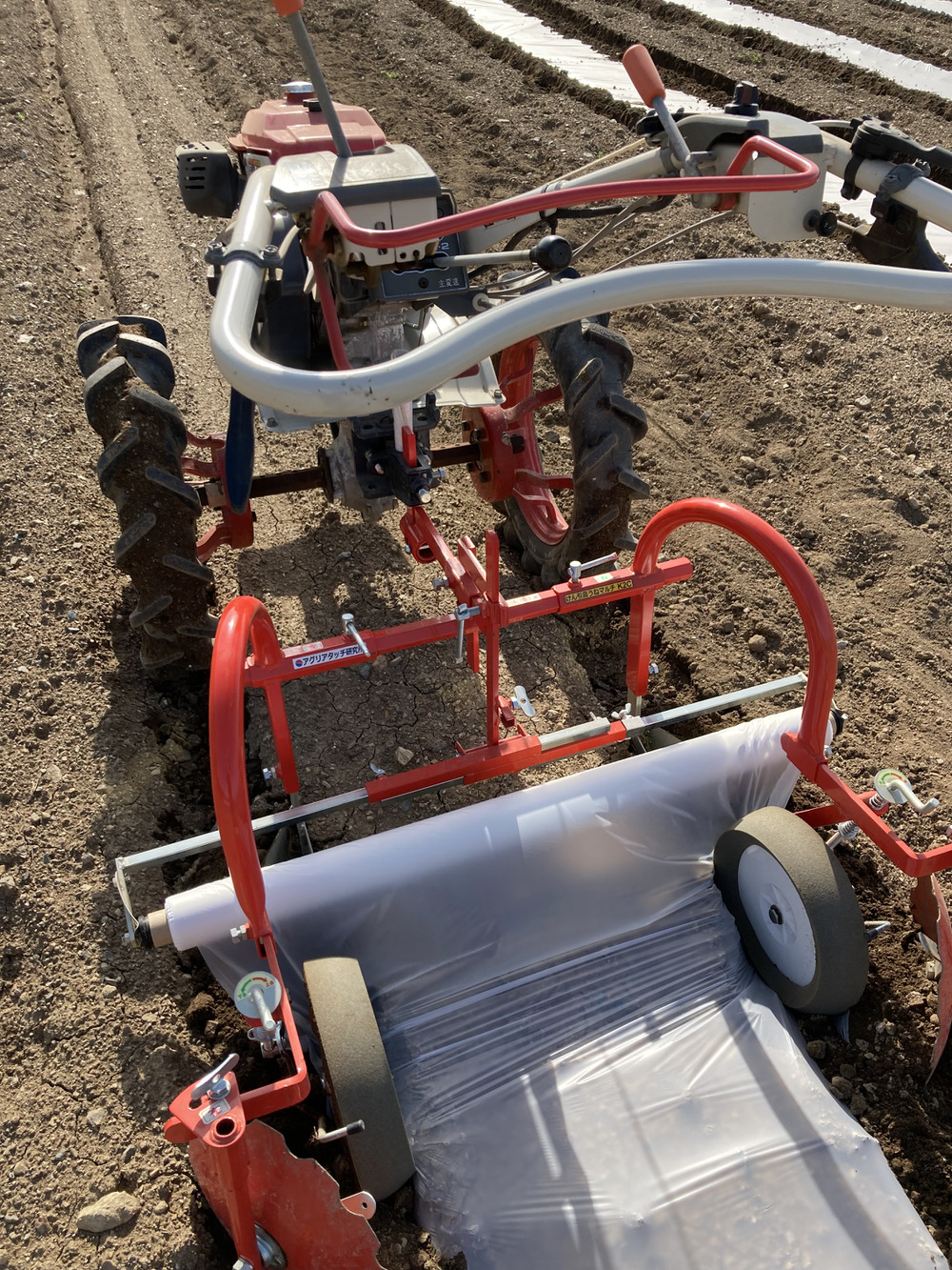 種をまいた後、マルチをかけてトウモロコシが順調に育つように作業をしていきます。