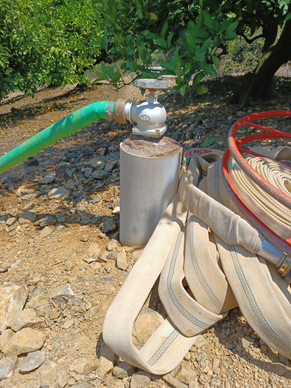 かん水作業では、雨が少ない年でも木が元気に育つように水を与えています。