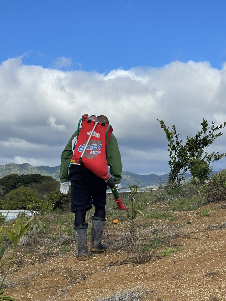 肥料をまきながら、一本一本のみかんの木を見て回る時間は、とても大切なひとときです。