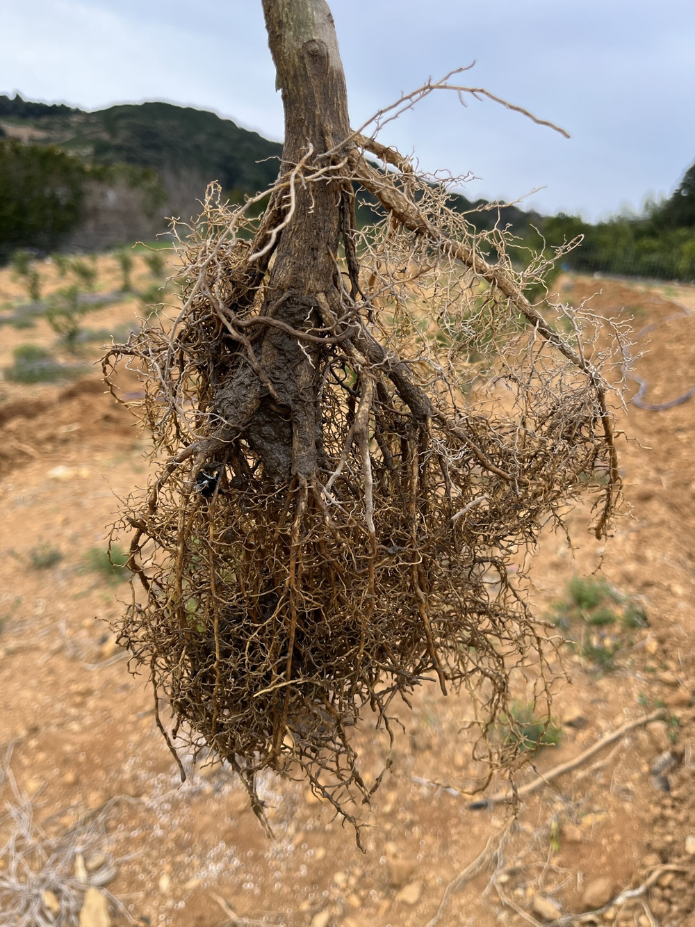 みかんの木の根は 地表近くに広がる ため、乾燥や大雨に弱いのが特徴。水はけの良い場所で育てたり、乾燥を防ぐために草を生やす工夫が必要です。