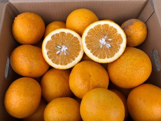 みかんの花は春(4〜5月頃)に咲き、甘く爽やかな香りを放ちます。この香りの成分「リナロール」にはリラックス効果があり、アロマオイルにも使われています。