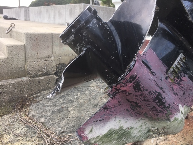 プロペラは新品に交換しなくてはなりません。船底が汚れてガソリンが2倍かかっている事と、梅雨明け以降さっぱり魚が獲れない事、また暑くて。