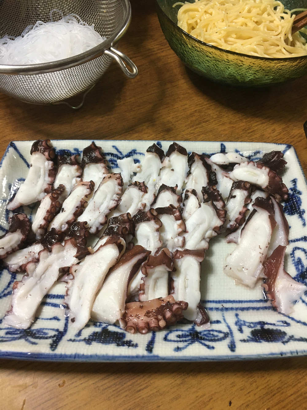 水槽で喧嘩して、足先食べられて死んでた🐙が我が家の食卓に。