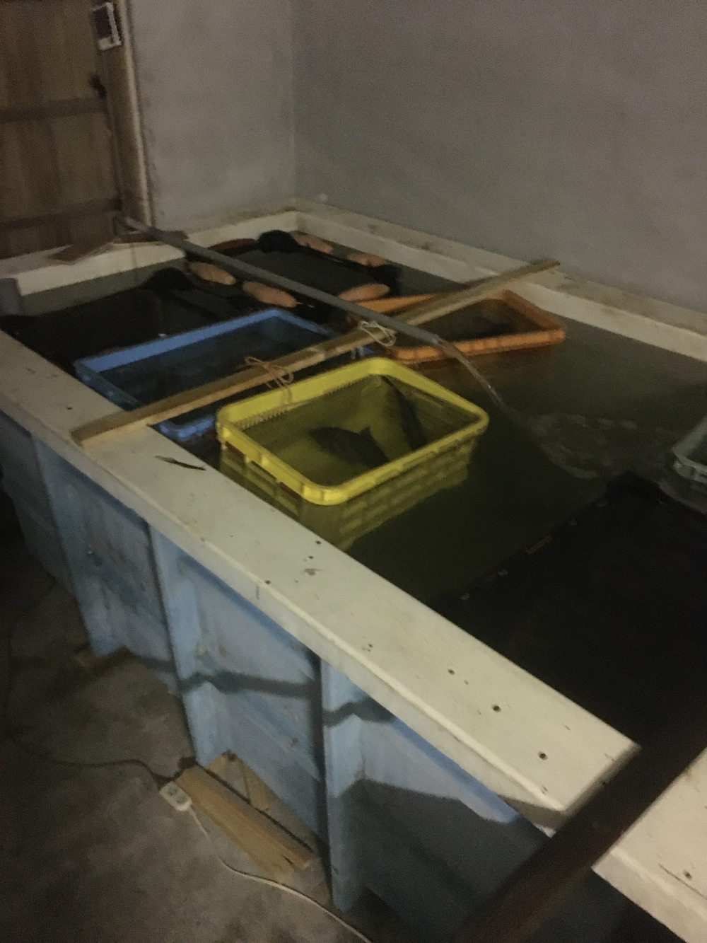 やっとのことで、生簀が完成しました。これで少しは、お客様に迷惑かけなくてすむかな!