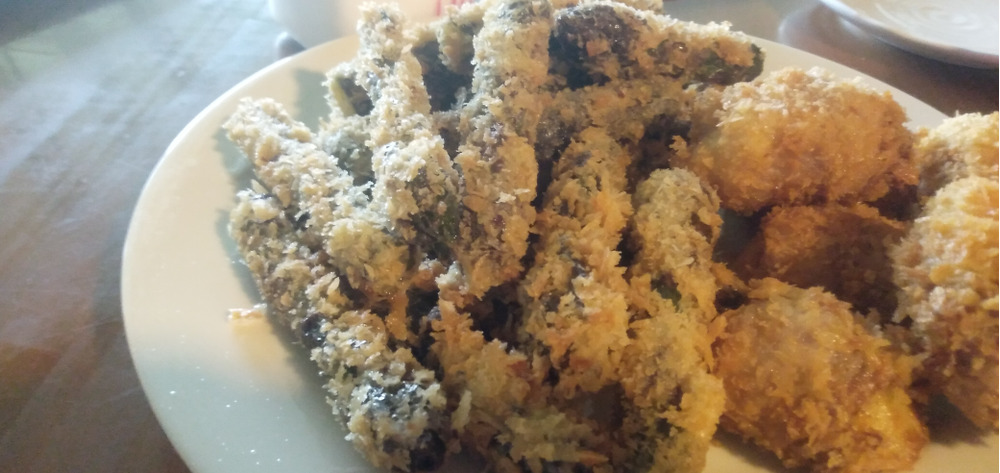 丸いのは越冬ジャガイモの肉巻きのフライです