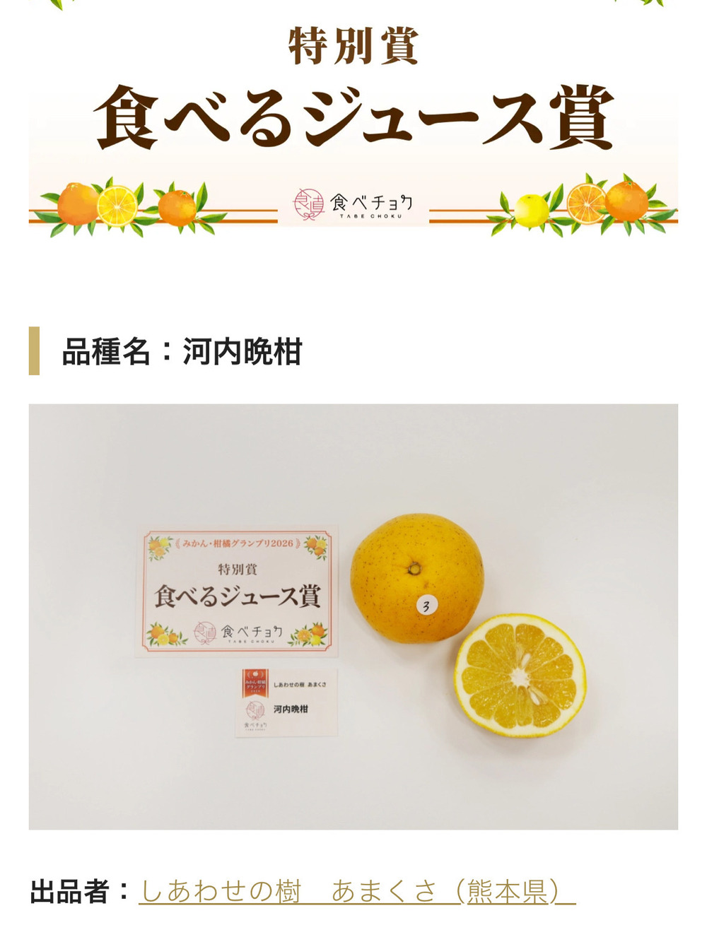 この賞を機に河内晩柑(あまくさ晩柑)が全国の方に広まってくれることを願います🙏