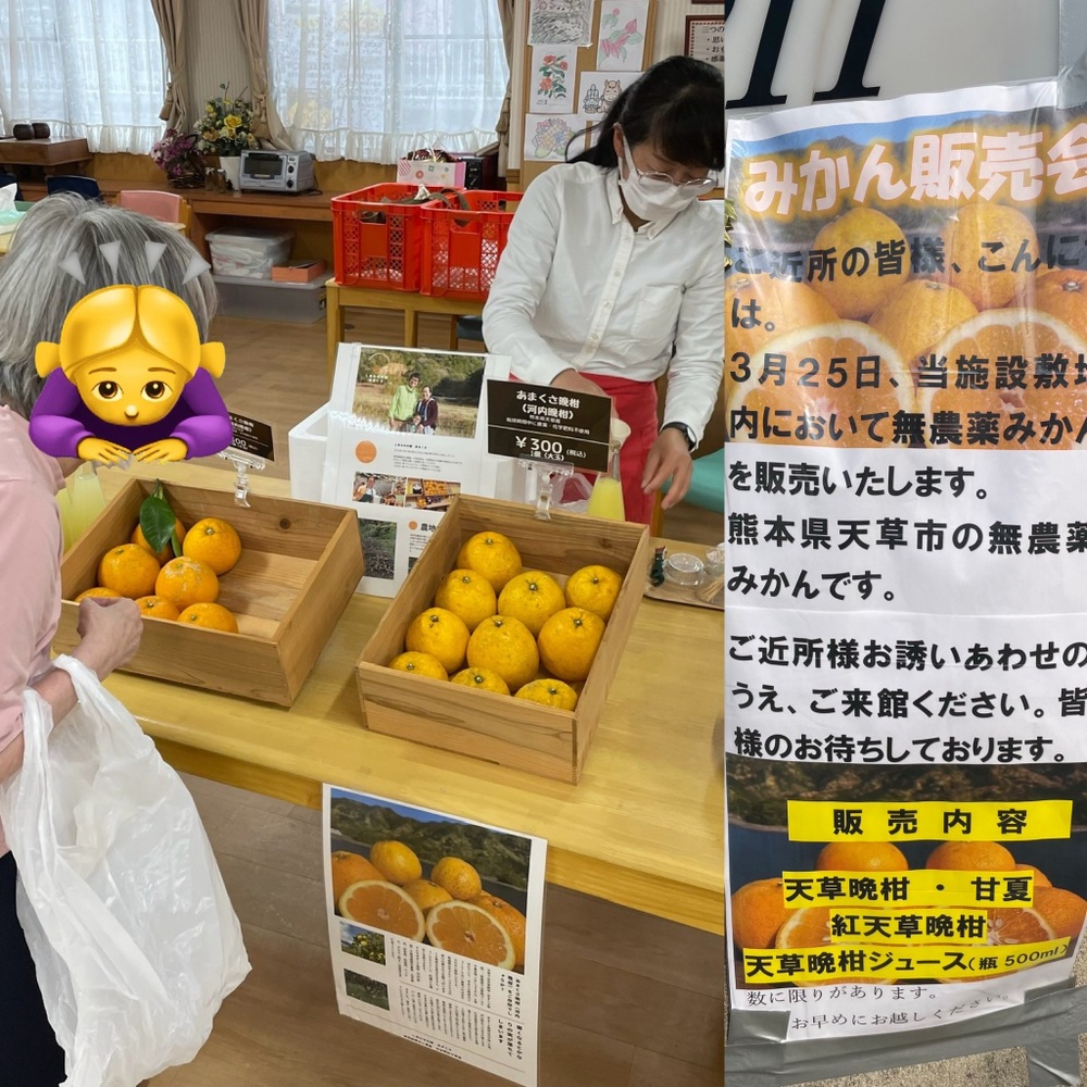 住んでいる地域の方にご紹介いただき、先日福岡の老人ホームで販売させていただきました🍊