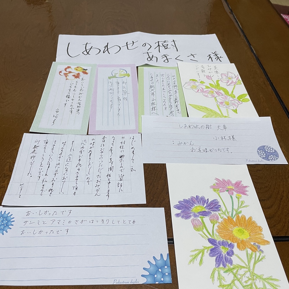 また私たちの柑橘を送らせていただいた介護施設のご利用者様からも心のこもったメッセージをいただきとても嬉しかったです。