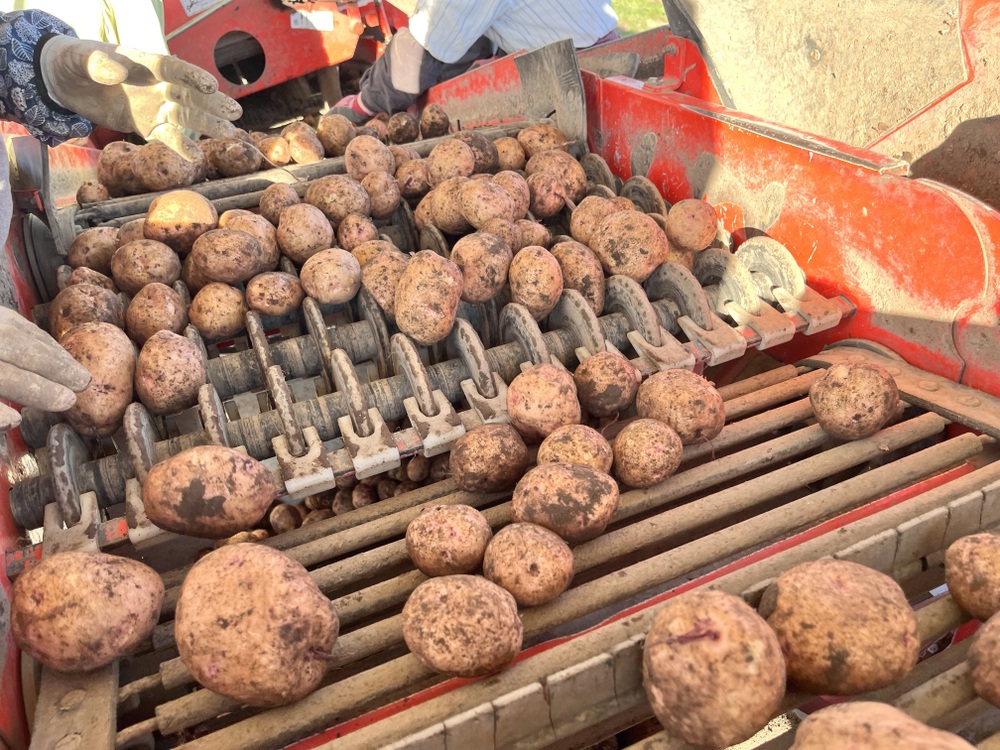 今年のじゃがいもは、比較的小さなものが多く、玉数(一株に対するじゃがいもの数)が少なく良い出来とは言えませんでしたが味は変わらず美味しいです!