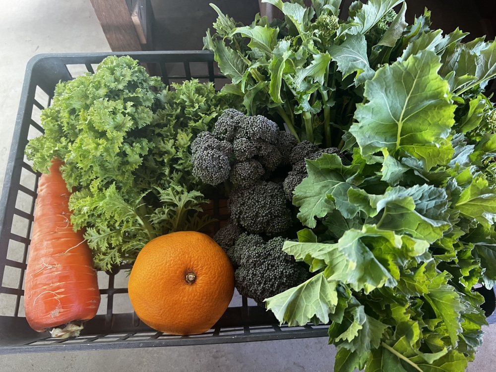 ご注文を頂くと、畑を見回り、今美味しい野菜を、総量約2kgになるように組み合わせ、袋詰めをして、梱包作業を行い発送させて頂きます。