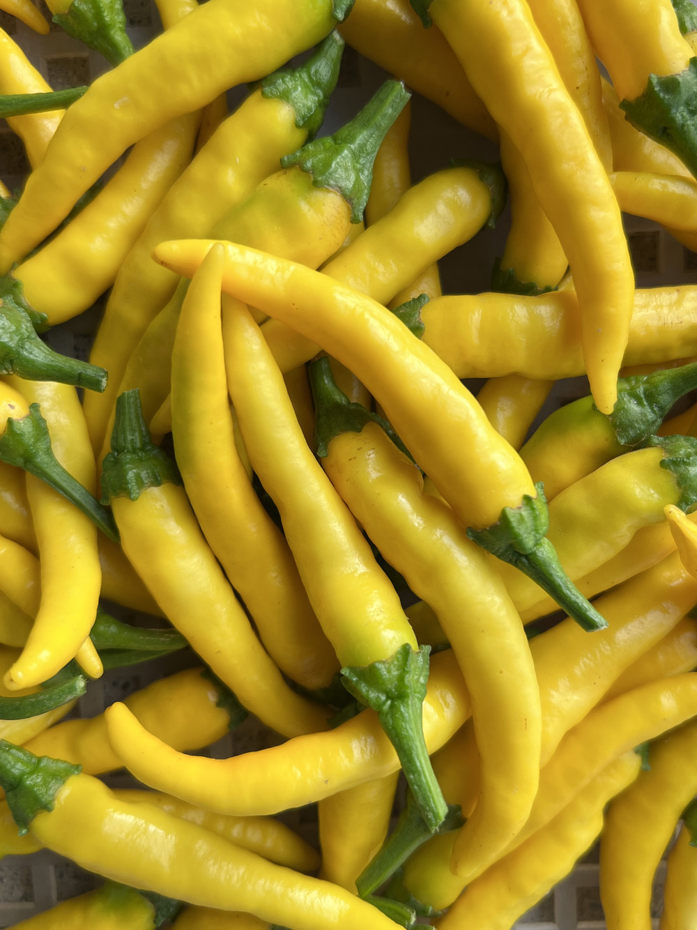 やっと、黄とうがらしが色づいてきたので、収穫をしました。