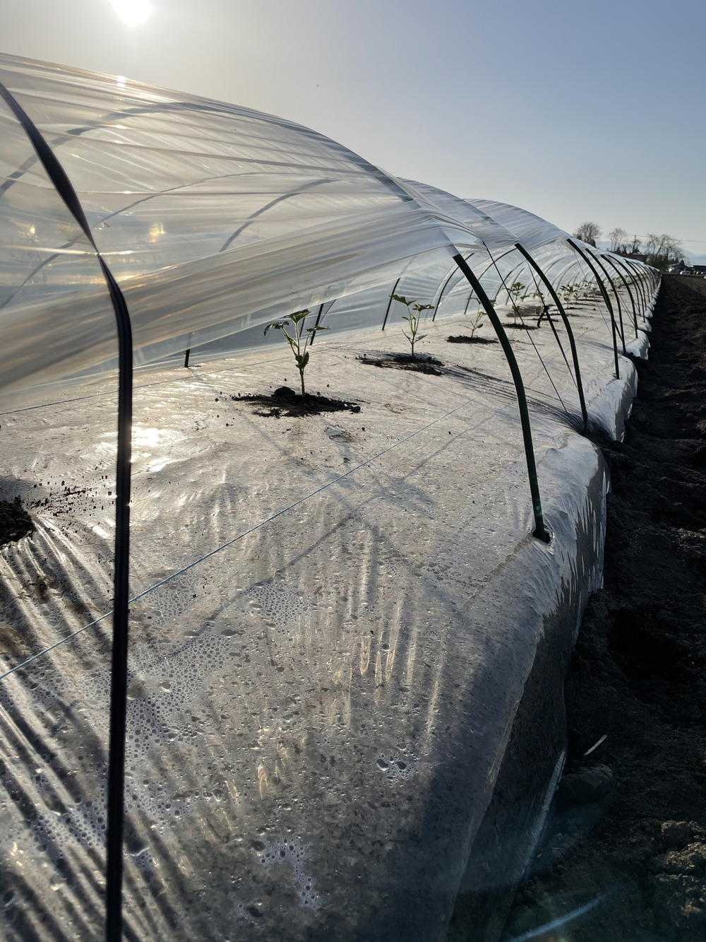 雨の中なんとかはったトンネルマルチが、翌朝強風で飛ばられるというトラブルも乗り越えて、やっとはりなおし、約3000株のすいか苗を全て手植えで植え付けました❗️