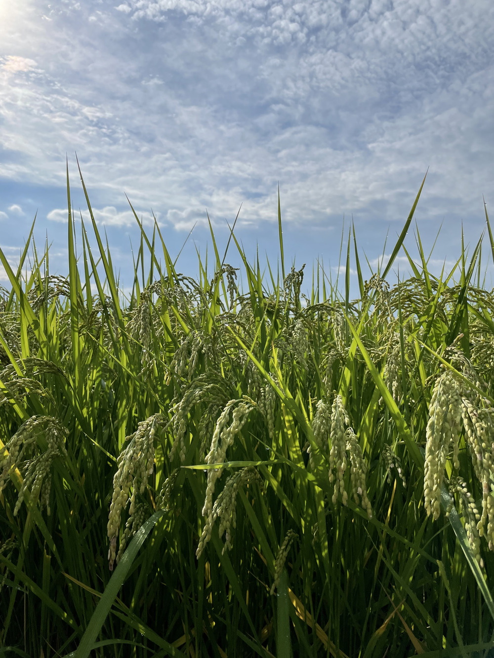 社長の熱視線(笑)とおひさまをたっぷり受けたEDEN米は、今のところ順調に成長し、豊作の予感🌾✨