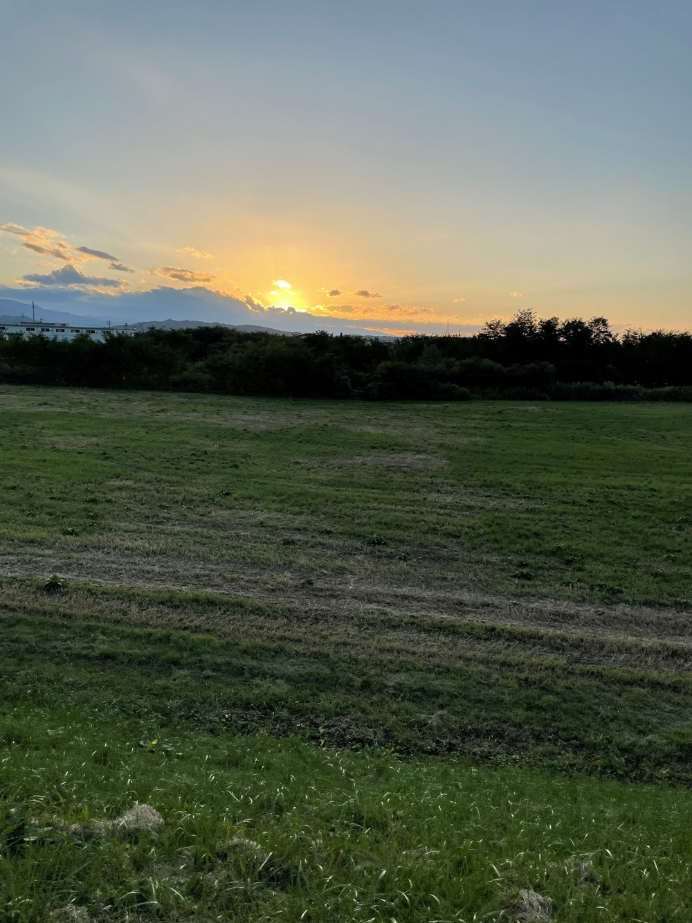 景色を眺める気持ちの余裕が最近あまりなかったのですが、久しぶりに涼しくなった夕方に散歩して夕日に感動しました。