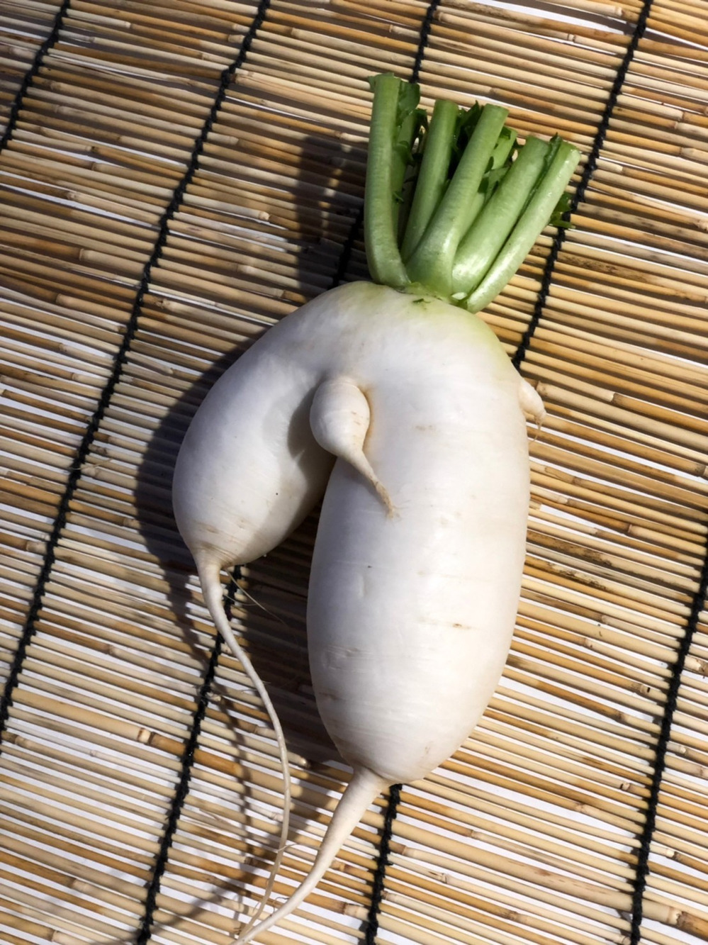 端っこに植えた大根がユニークだったので、紹介します🤣
