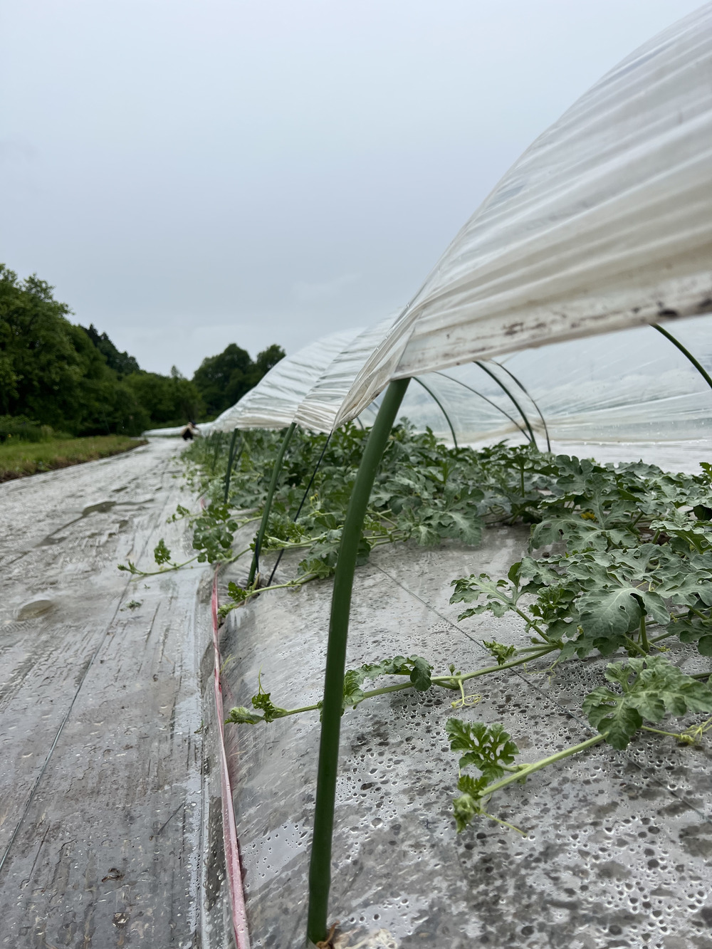 EDENの畑に最初に植え付けたすいかのツルもだいぶのびてきました。