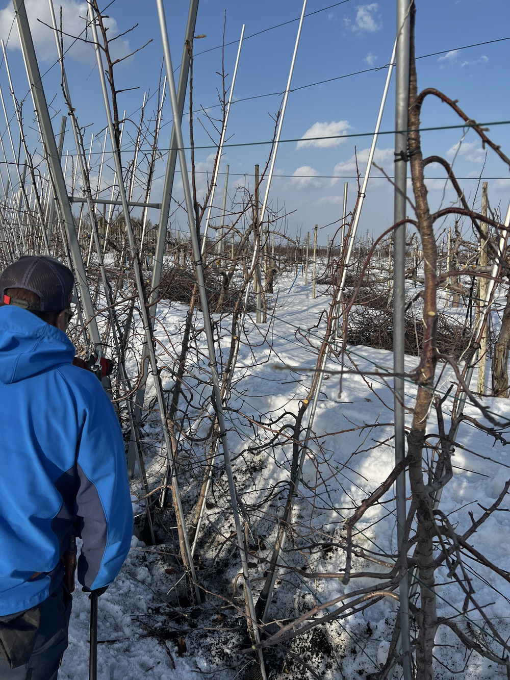 また、見たことがないほど雪が積もっており、同じりんごの産地でも環境の違いに驚くことばかりでした。