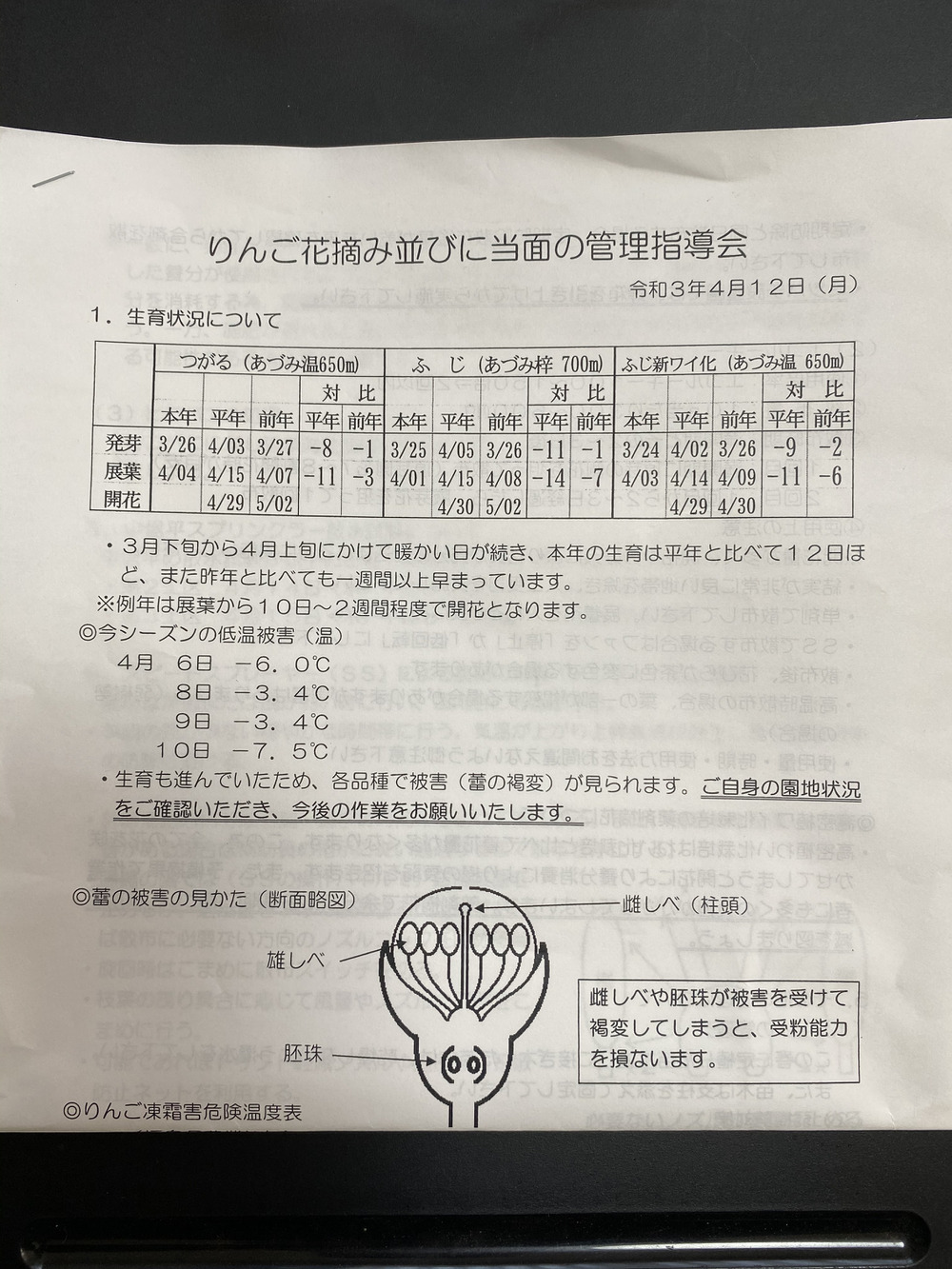 りんごの状況も深刻で、ピンクレディなどの中心花が被害を受けて良品の収穫量が減ります。