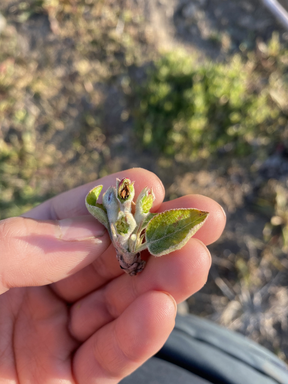 りんごが実りません。真ん中の花なので、品質が高い部分が被害を受けました。