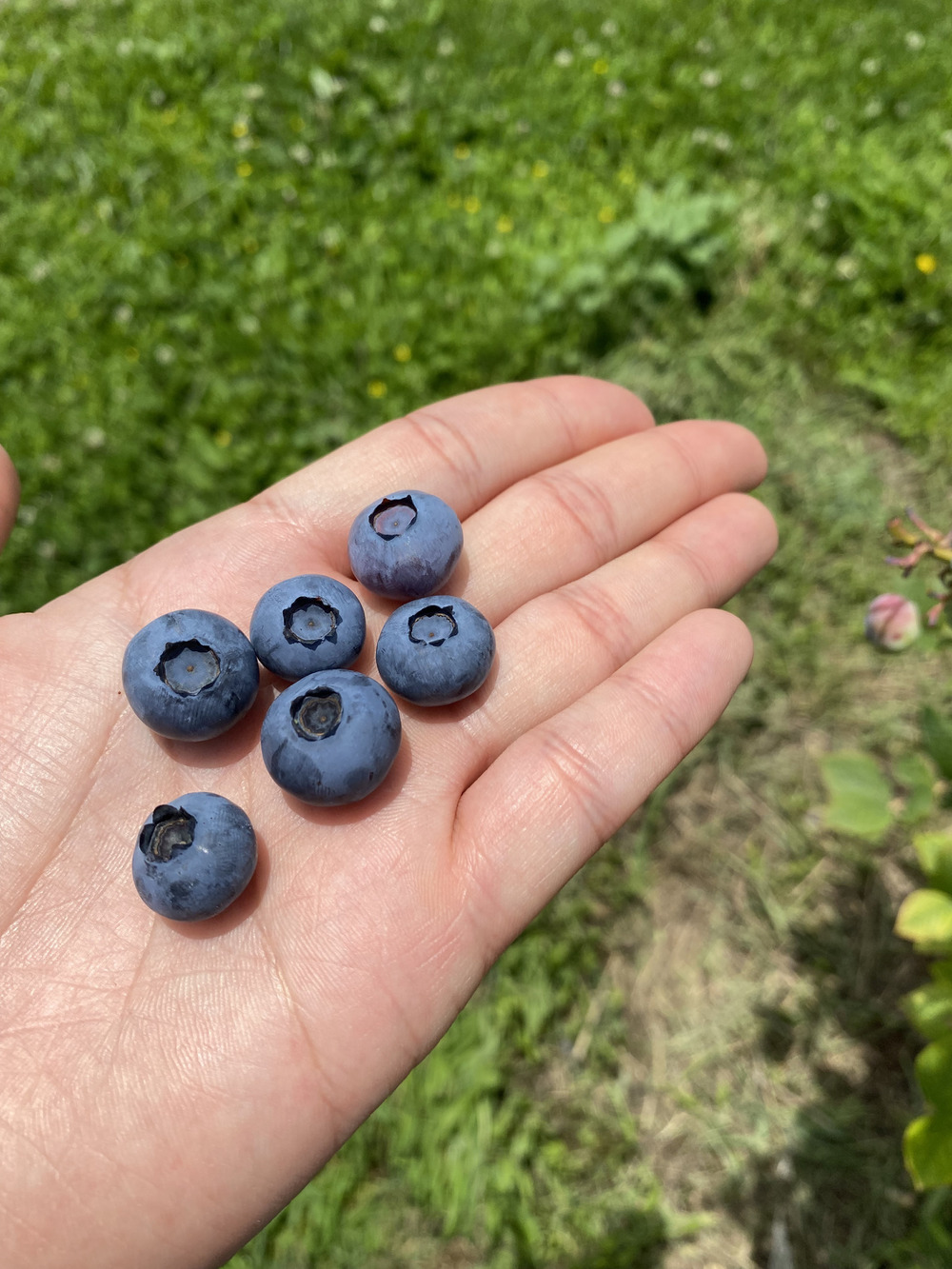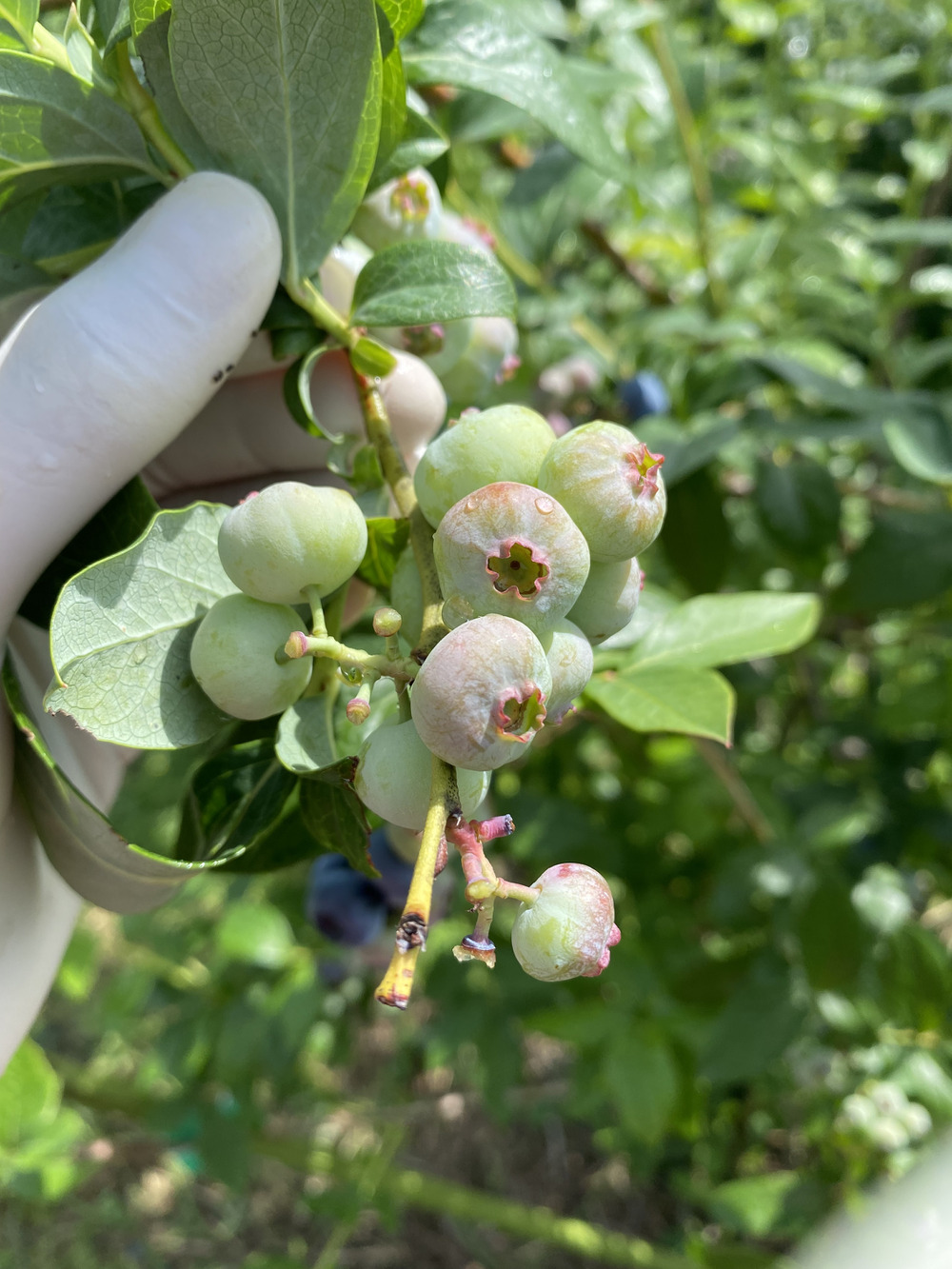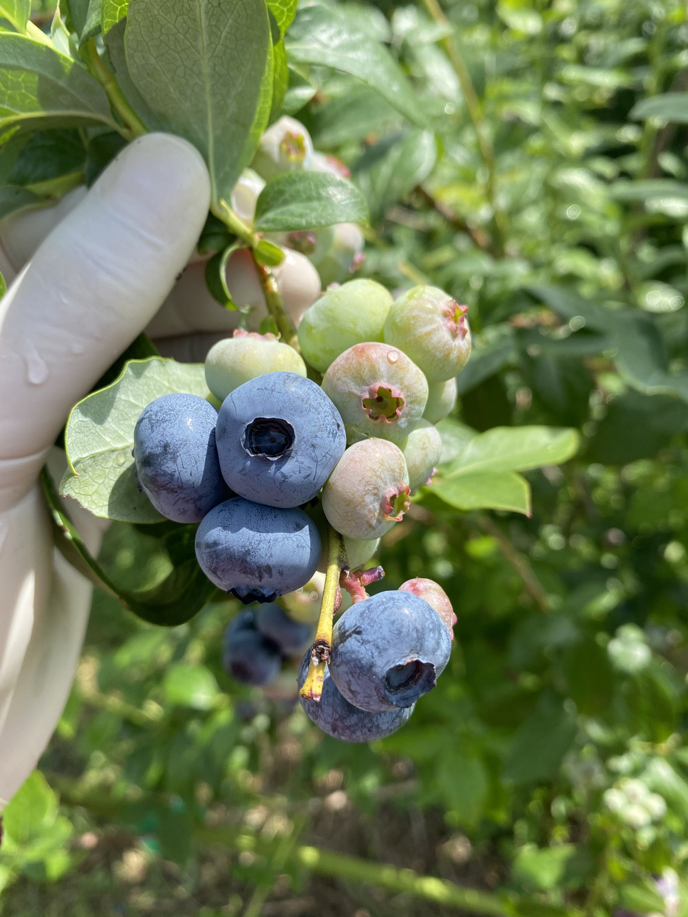 ブルーベリーは個体ごとに熟すタイミングが異なりますので、写真のように熟したブルーベリーを選んで収穫しています。