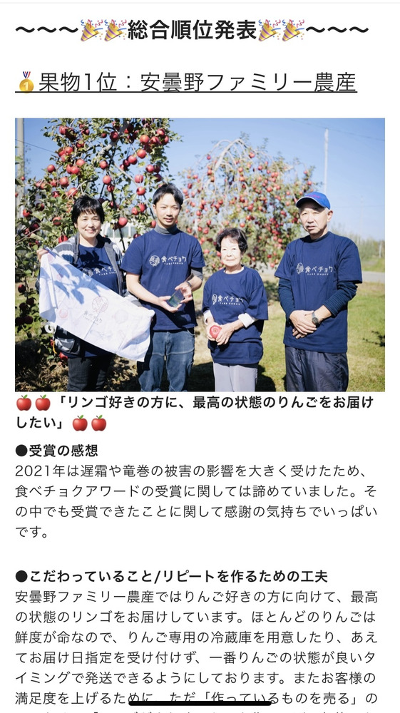 安曇野ファミリー農産 果物部門4年連続1位&殿堂入り&りんごグランプリ2025最高金賞1位 信州りんご 幻のりんご