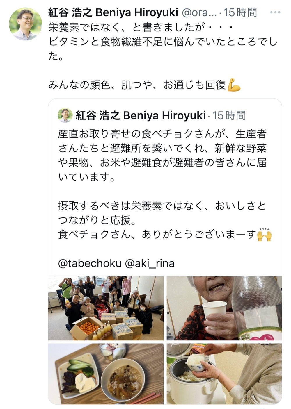 お優しい気持ち、食べチョクユーザーにも伝わります!嬉しいです!私も自分に出来る支援を続けて行きたいと思ってます!皆に元気をありがとうございます!