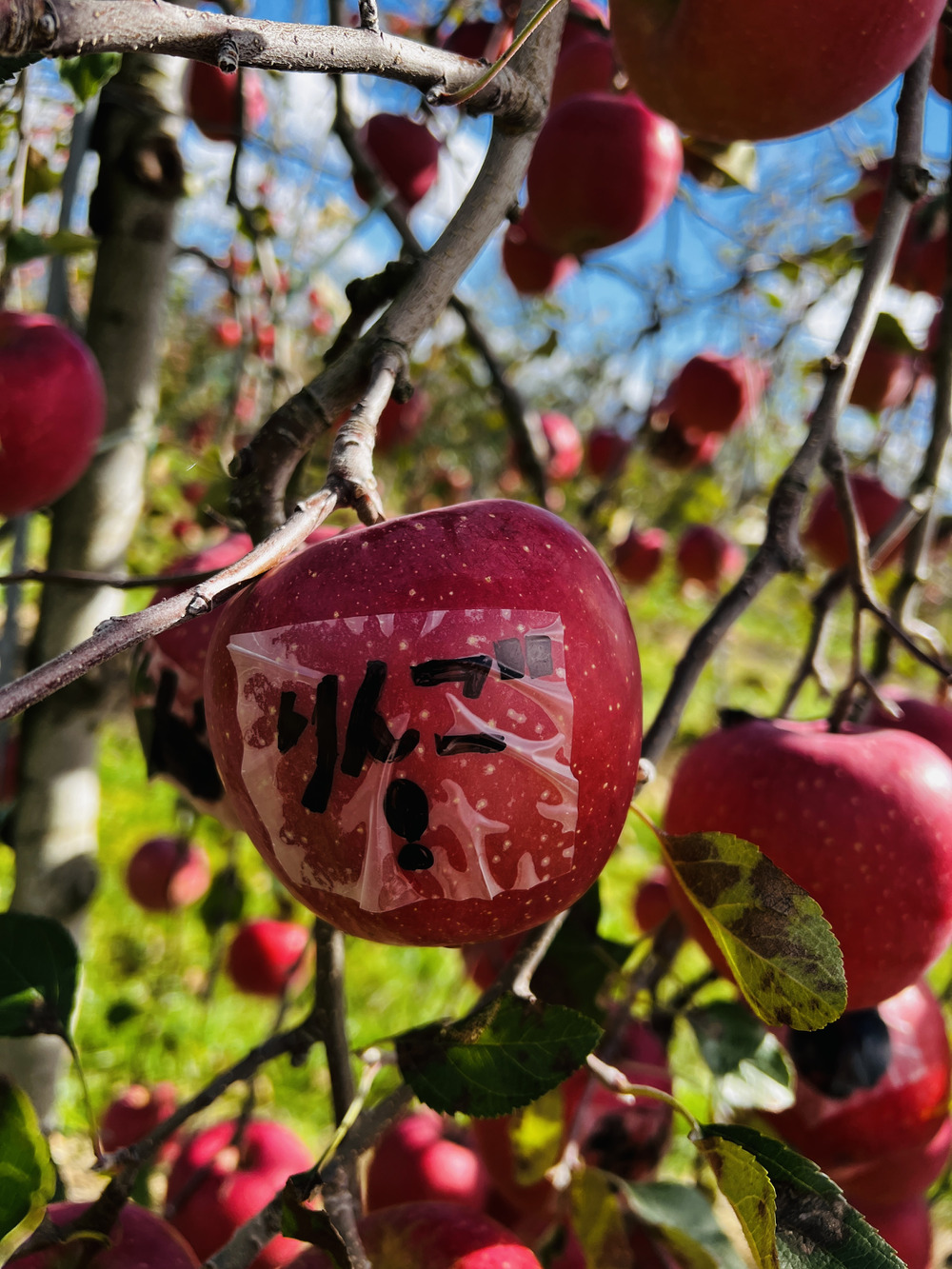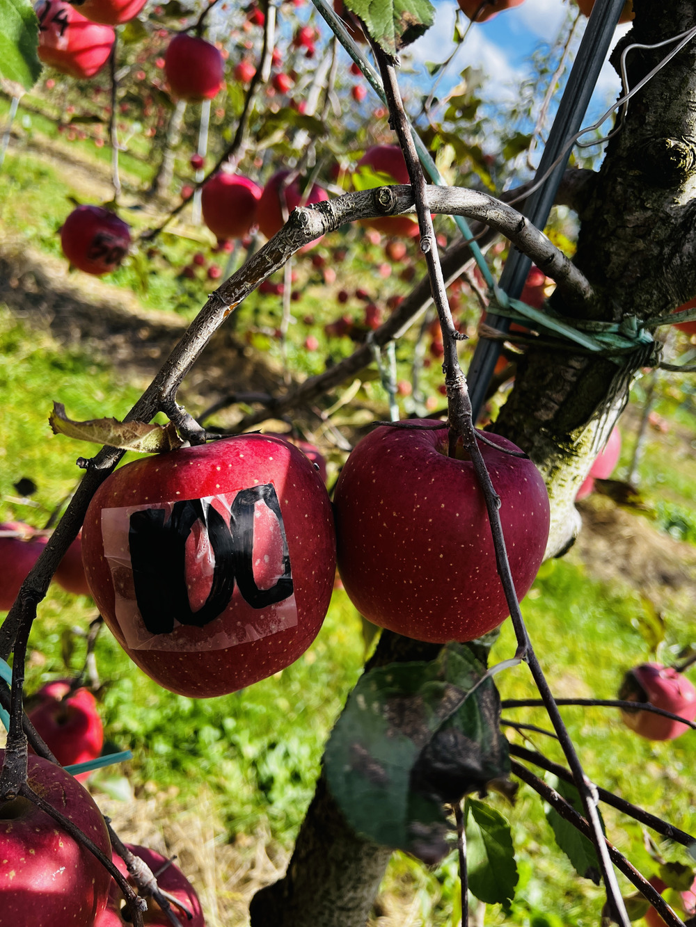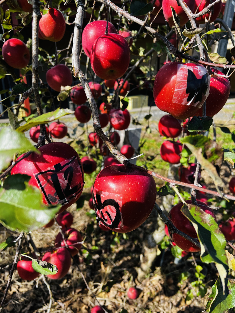 青い空に真っ赤なりんごがとても映えますね✨️