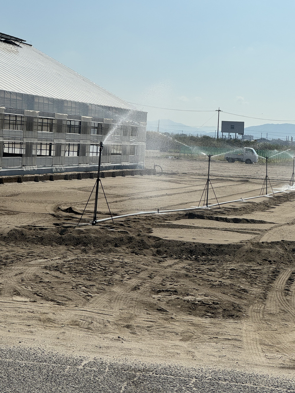 種を撒いたらまたスプリンクラーを設置、という日々です。