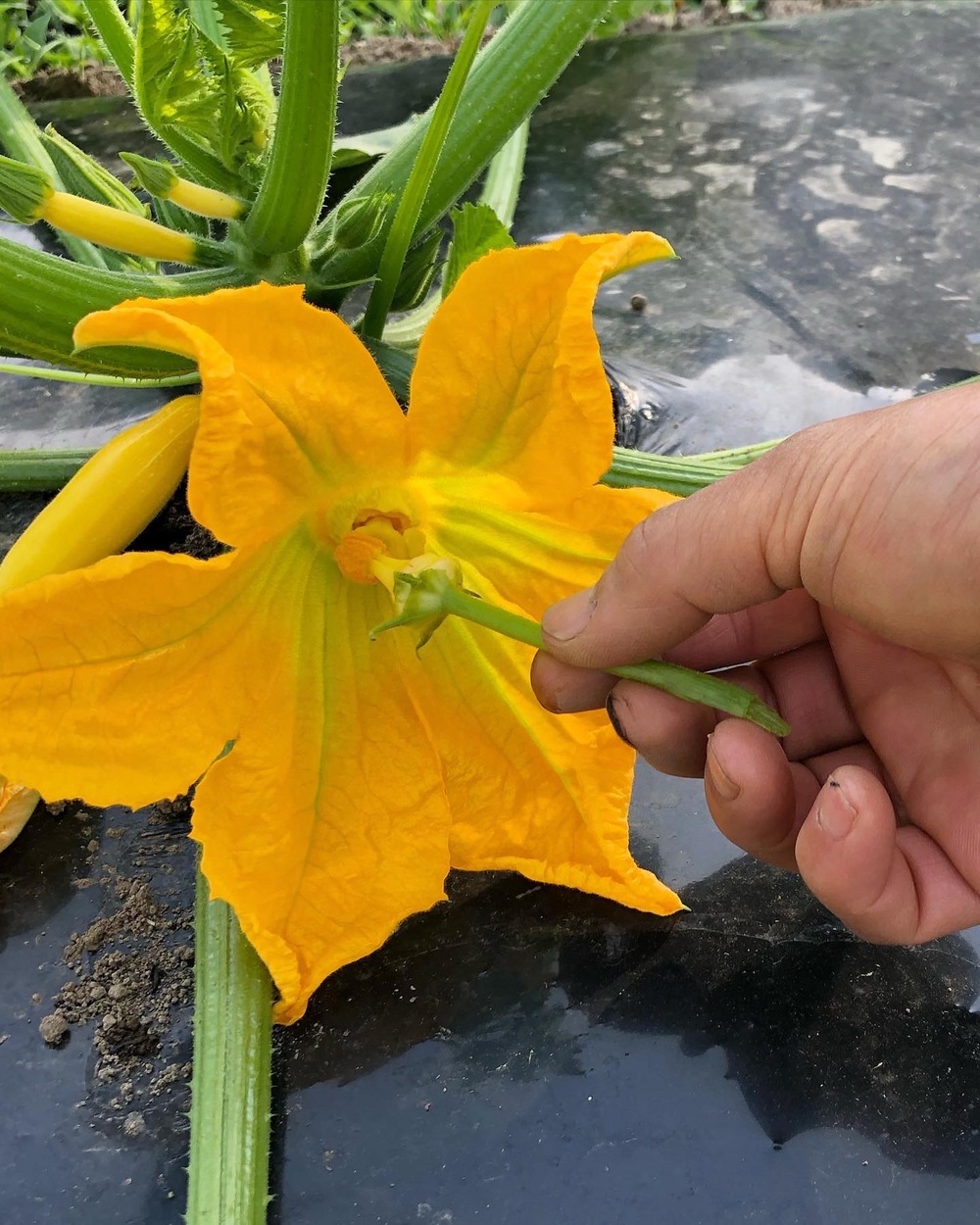 ズッキーニの雄花が、やっと咲きました‼︎