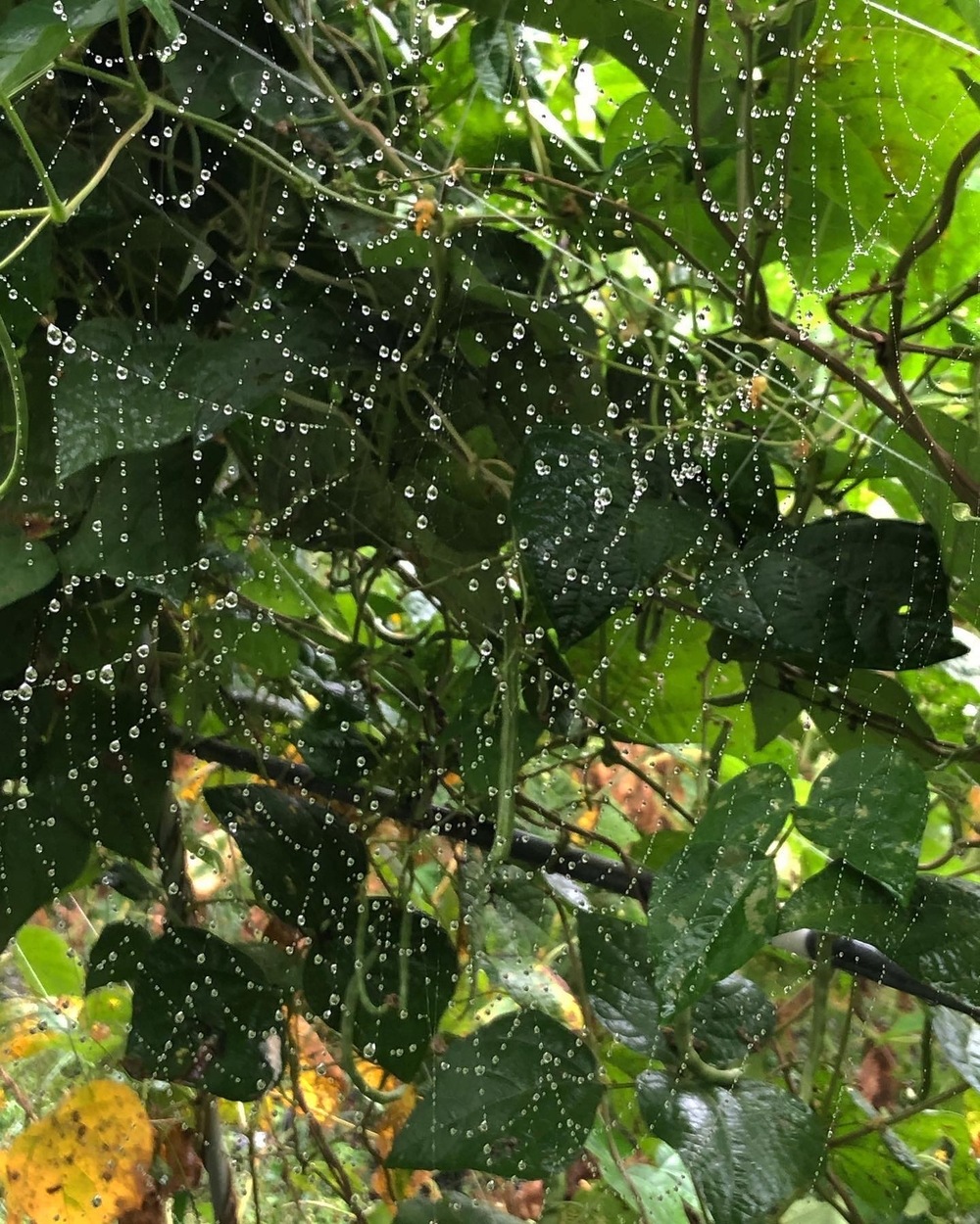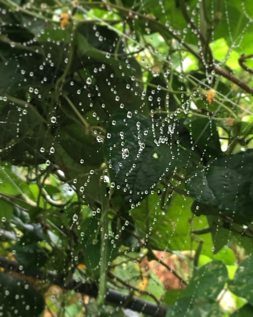 蜘蛛の巣に雨の滴が付いてとっても綺麗!(上手く写真撮れず。実物は、もっと綺麗なのに〜)