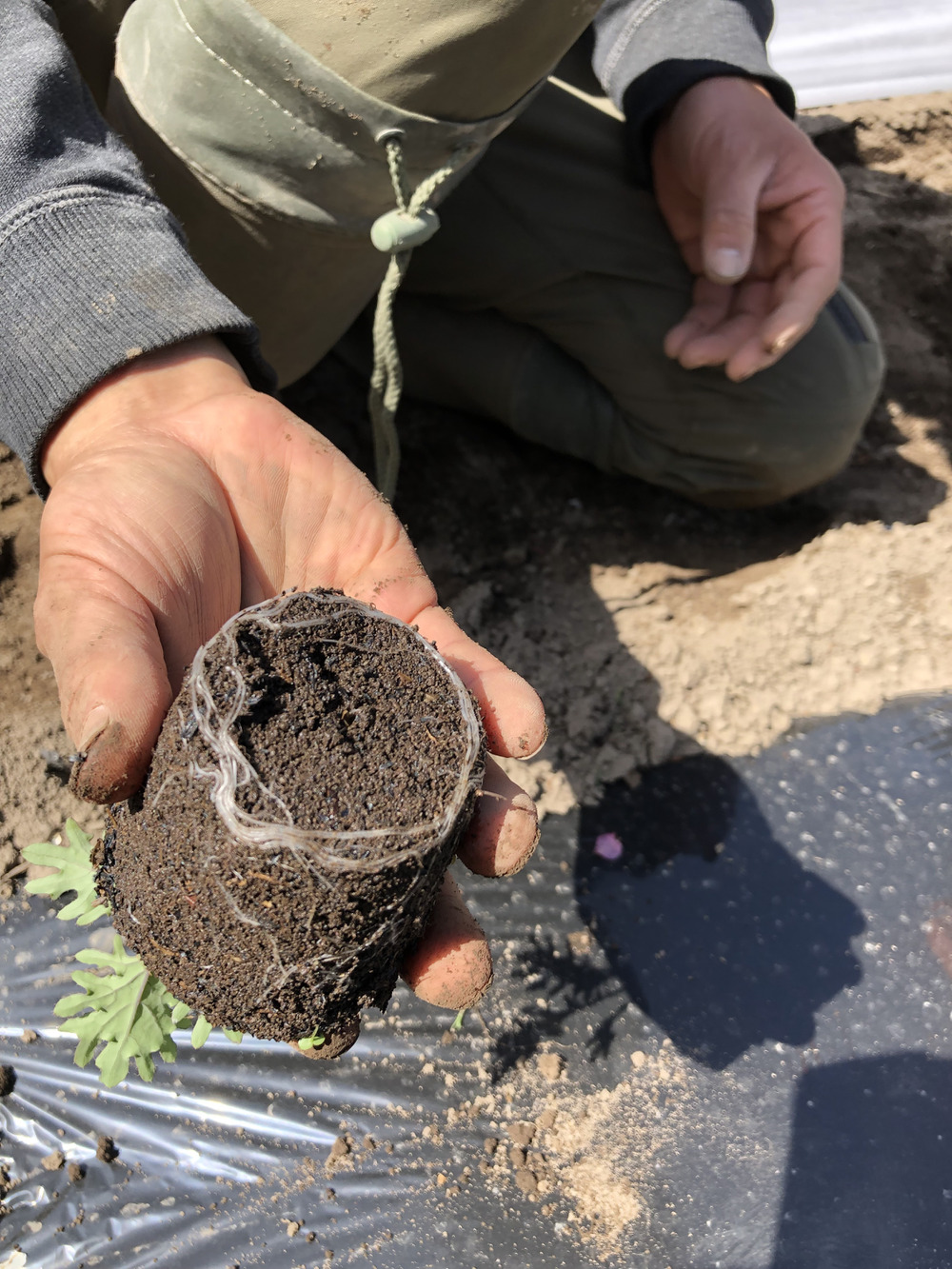 根っこもいい感じに成長。ベストタイミングで畑へ。