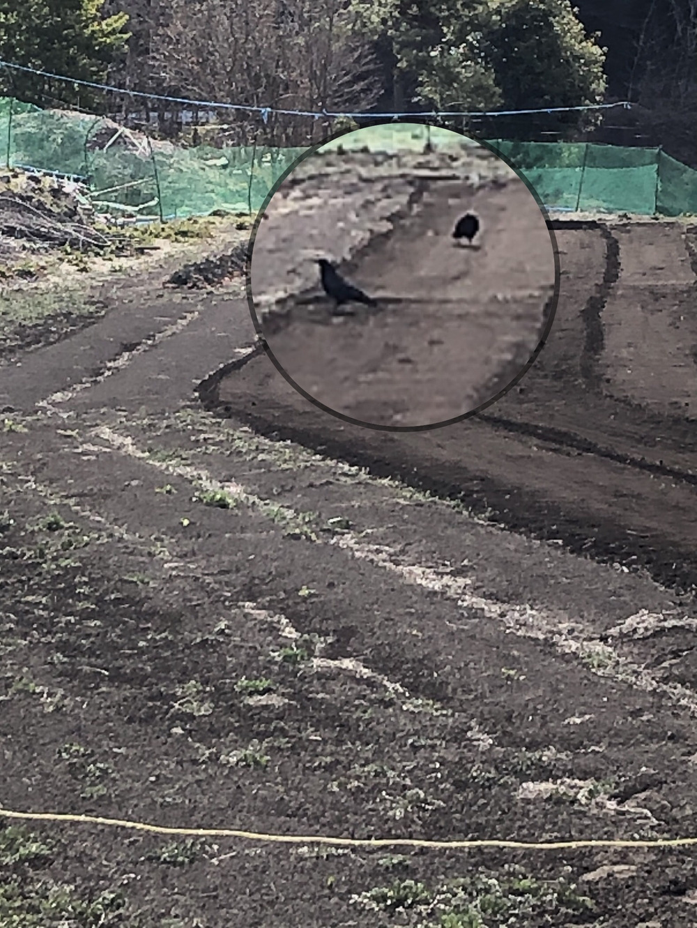 そう、このカラスさんたちは、いつもトラクターをかけ始めるとしれーっと現れて、耕運された畑で何やら餌を探し始めます。