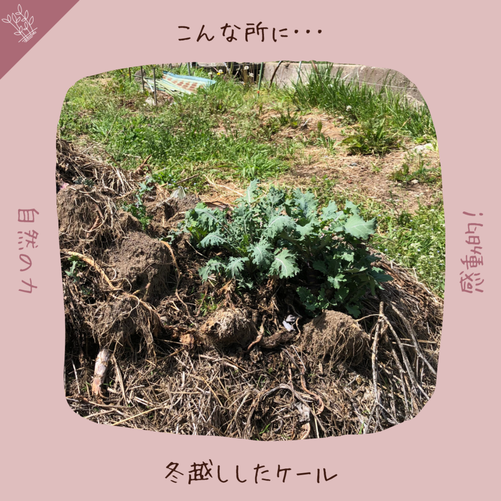 先日、そこからケールが育っているのを発見。