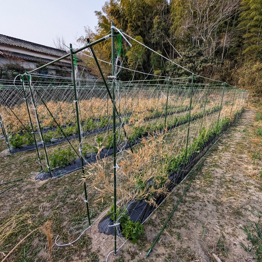 ウチのエンドウさん達、寒い中でも枝が日々着実に大きくなっています👌どうにか1月中にネット張りができました🙌このまま無事に2月を乗り越えて、3月になって暖かくなると一気に成長するはずです✌️