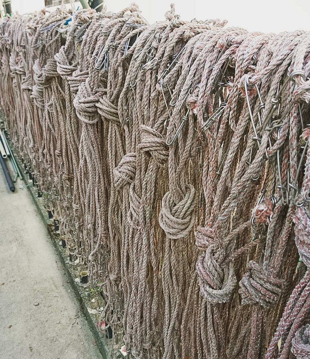 そして、今は綱などの漁具を洗い、修理して、整理しています。