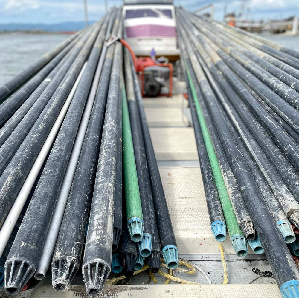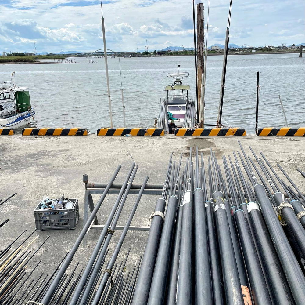 その日立てる分を終えたら、帰港してから翌日分の支柱を船に積み込みます。
