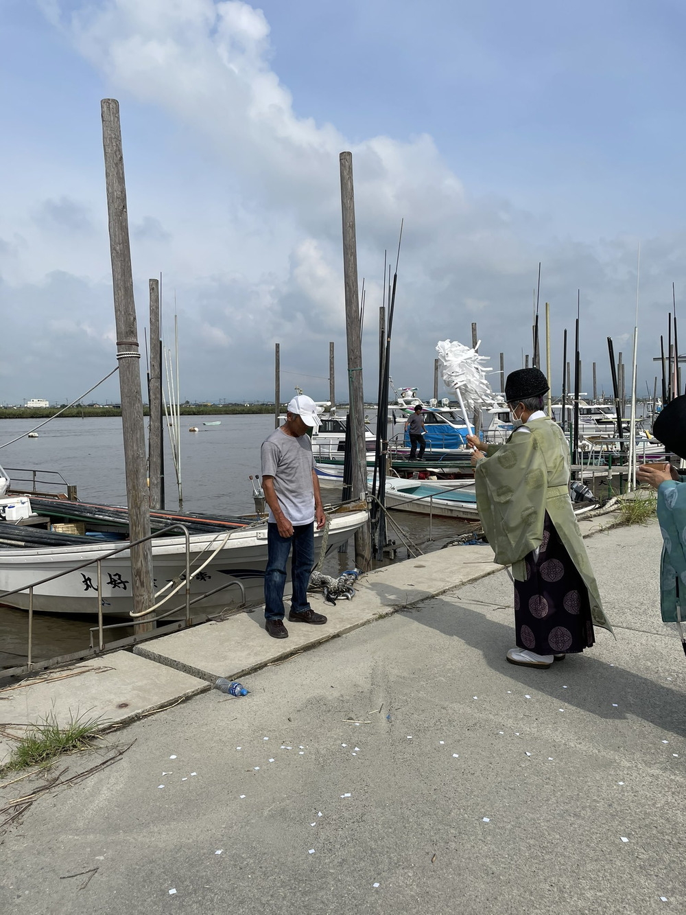 漁港で神事を行った後、各漁師さんの漁船をお祓いしてもらいます。
