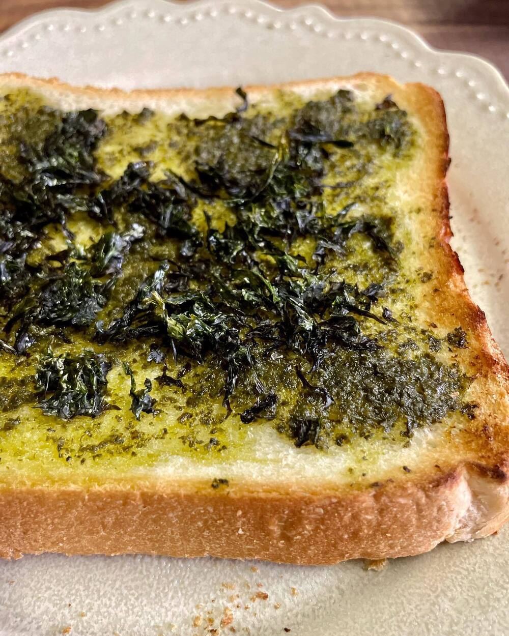ジェノベーゼ風大葉ソースと『有明海苔 紫彩』のトースト