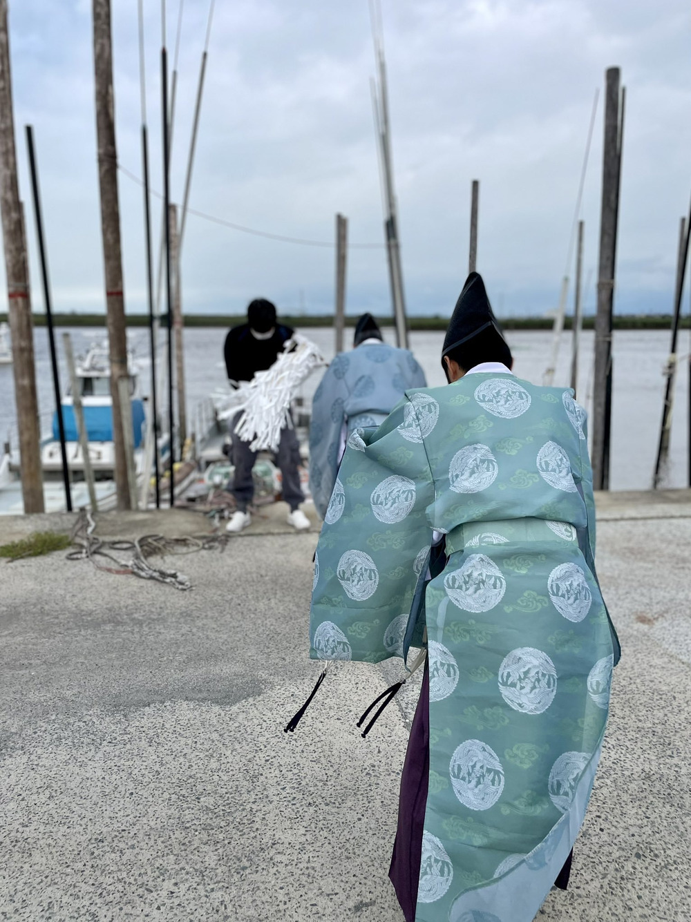 毎年漁期が始まる前に、大川市民には「おふろうさん」と呼ばれ親しまれている風浪宮の宮司さんに大川漁協の海苔漁師さんの海上安全、豊漁祈願を祈願してもらいます。