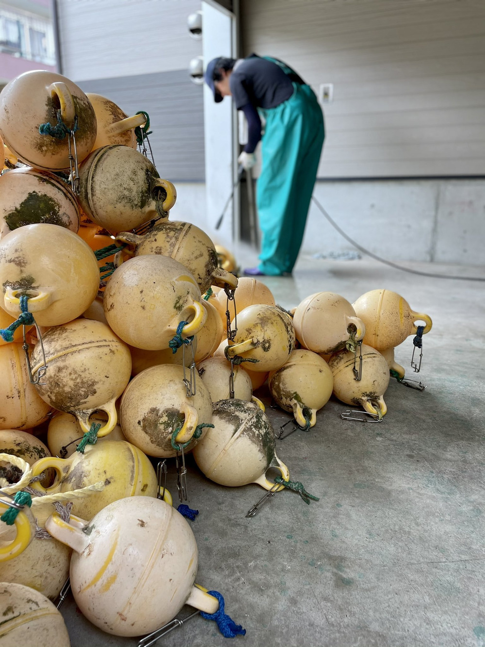 漁具の綱や浮き、その他もろもろを洗って修理して整理して。