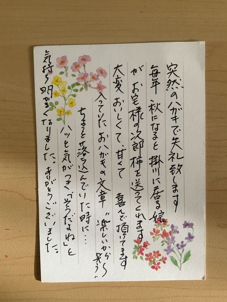 柿の中にお葉書を入れて良かったと思いました。